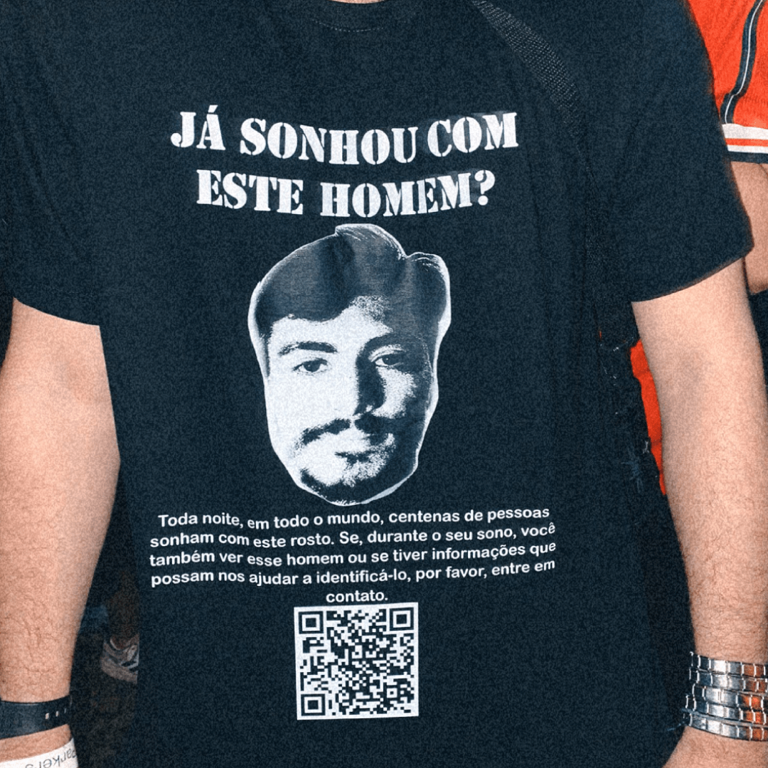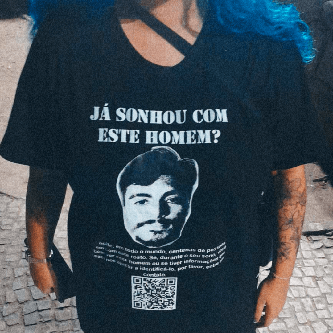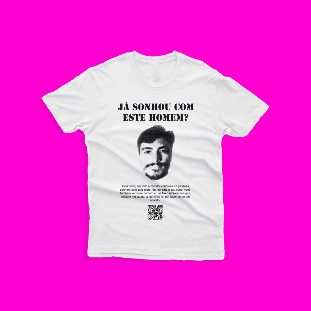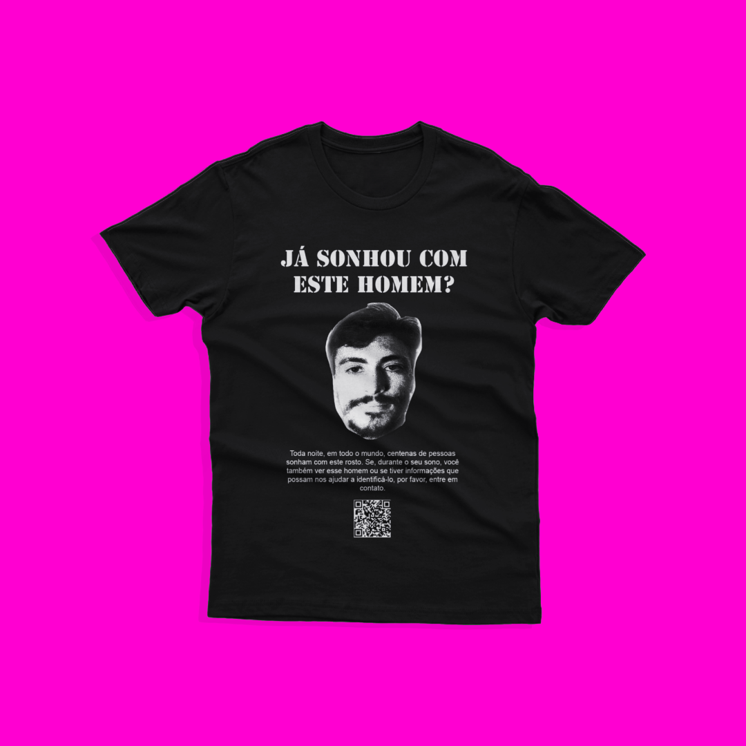 Reza a lenda que toda noite, em todo mundo, centenas de pessoas sonham com este rosto. Se, durante o seu sono, você também ver este homem ou se tiver informações que possam nos ajudar a identificá-lo, por favor, entre em contato. Espalhe a palavra do underground com esta blusinha.